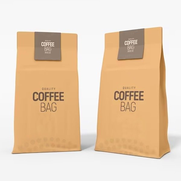 - Flat-Bottom Kraft Bags – Stable on shelves, suitable for retail or bulk coffee packaging.